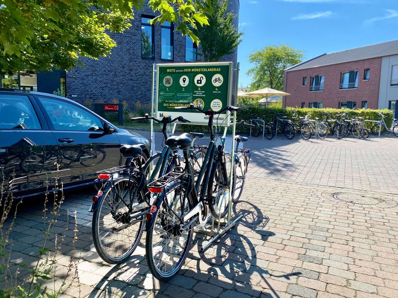 Kurzentschlossene können sich ihr MünsterlandRad (ohne E-Antrieb) an unserer Bike-Sharing-Station direkt am Hotel leihen.